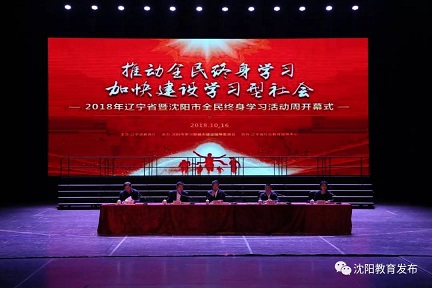 10月16日上午,2018年辽宁省暨沈阳市全民终身学习活动周开幕式在辽宁大剧院隆重举行。沈阳市委常委、宣传部长、市学习型城市建设指导委员会副主任冯守权,辽宁省教育厅党组成员、省委高校工委副书记李庆才,沈阳市教育局局长、沈阳市学习型城市建设指导委员会办公室主任闫凤霞,辽宁省社区教育指导中心主任伊焕斌、沈阳市社区大学、沈阳市社区教育服务指导中心主任王滨出席开幕式,来自全省13个地级市的代表及沈阳市学习型城市成员单位、13个区(县、市)相关领导、学校代表、社区代表、学生代表千余人参加开幕式。