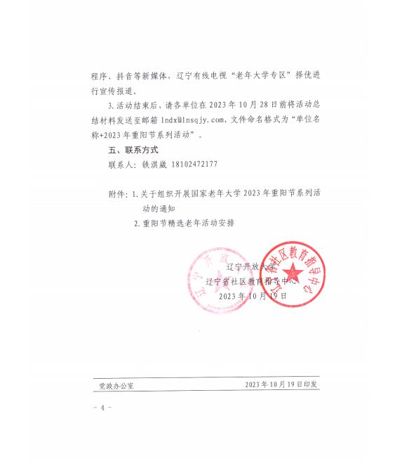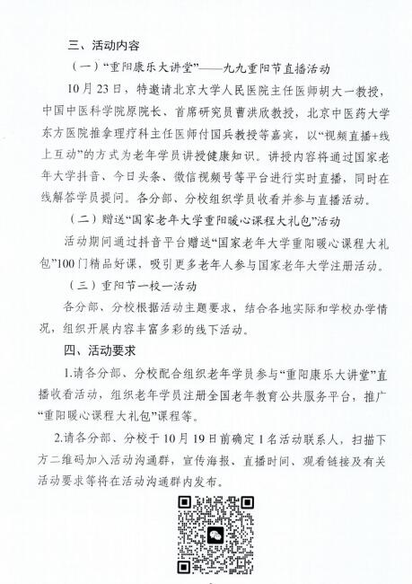 辽宁开放大学 辽宁省社区教育指导中心 / 关于组织开展2023年重阳节系列活动的通知