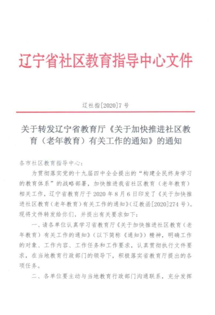 关于转发辽宁省教育厅《关于加快推进社区教育(老年教育)有关工作的通知》的通知