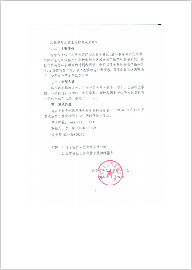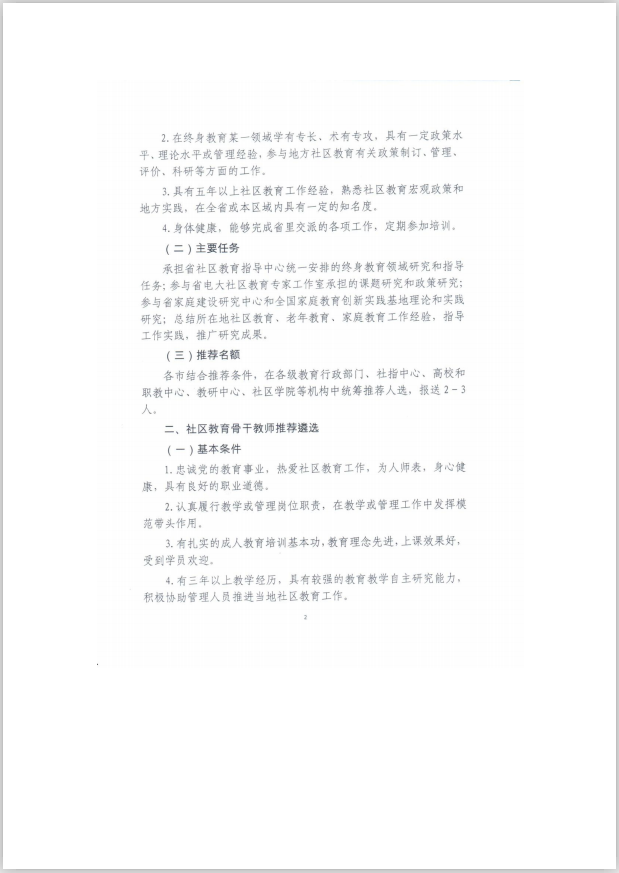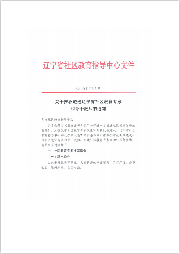 关于推荐遴选辽宁省社区教育专家和骨干教师的通知