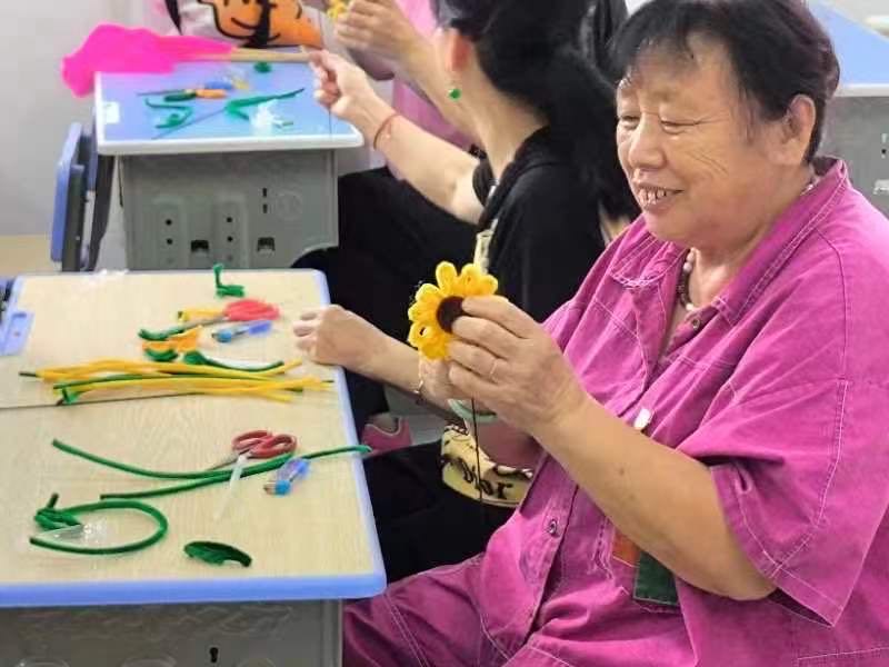 2023年9月15日下午,富民社区幸福教育课堂开展了“欣欣向荣,国泰民安”非遗仿绒花手工主题活动。活动现场,老师先向大家介绍了绒花的相关知识,展示了许多绒花的图片,让大家更好的了解和喜欢绒花。然后教大家如何制做绒花的花瓣、根、叶子。学员们积极参与,很快地领悟到了制做绒花的方法,大家相互合作、共同讨论,纷纷制作出了美丽的绒花。通过此次活动,不仅让社区居民了解了绒花手工艺的技艺,还了解了民族文化,认识到非遗使我国的传统文化得到了传承。