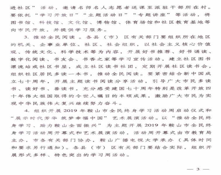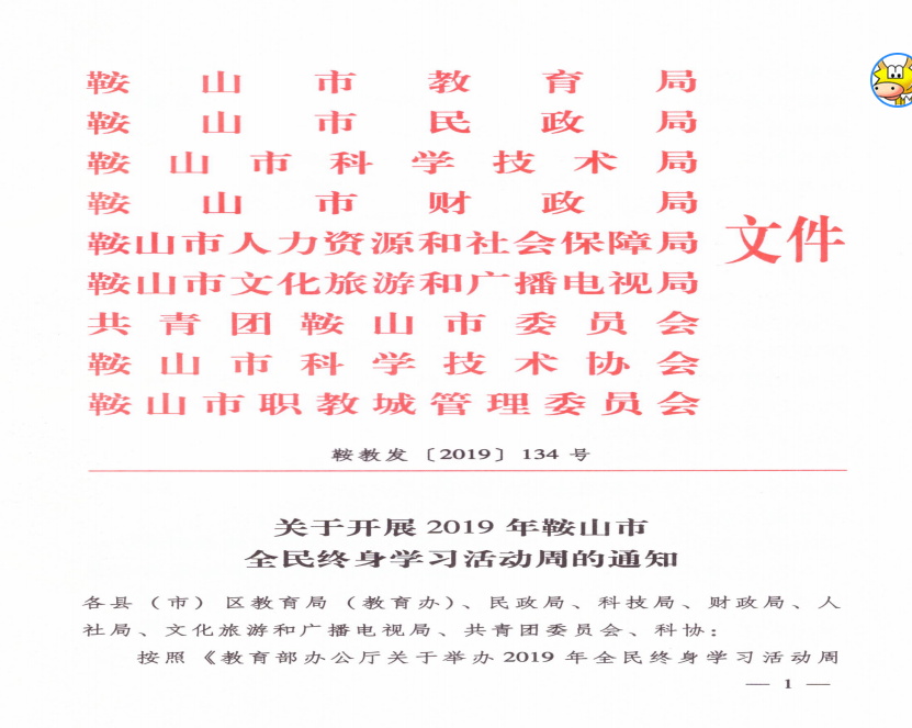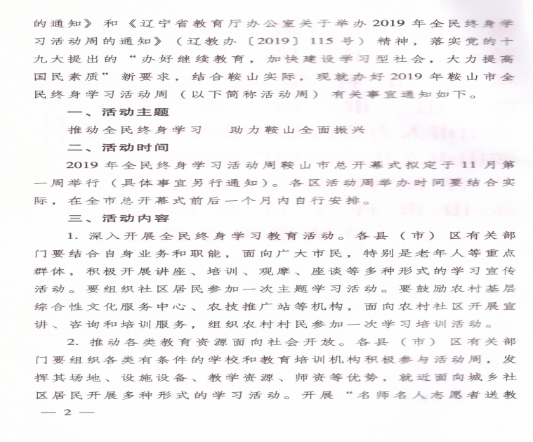 关于开展2019年鞍山市全民终身学习活动周的通知